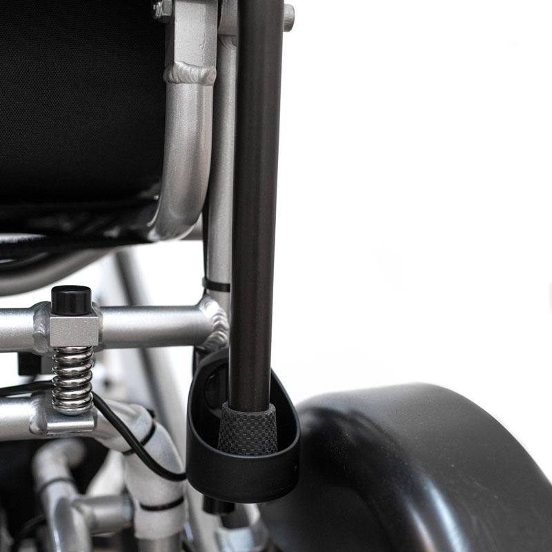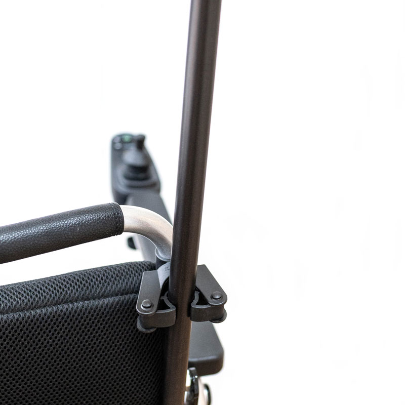 Držač za štake Eloflex nezamjenjiv je dodatak za osobe koje traže praktično rješenje za nošenje štaka ili štapa sa sobom. Držač za štake odgovara svim štakama i štapovima standardnih dimenzija i ne mora se podešavati ako se prebacujete između različitih štapova ili štaka. Držač za štake pričvršćujete s pomoću priloženih vijaka s glavom Torx, koji se mogu pričvrstiti na okvir vaših kolica Eloflex.