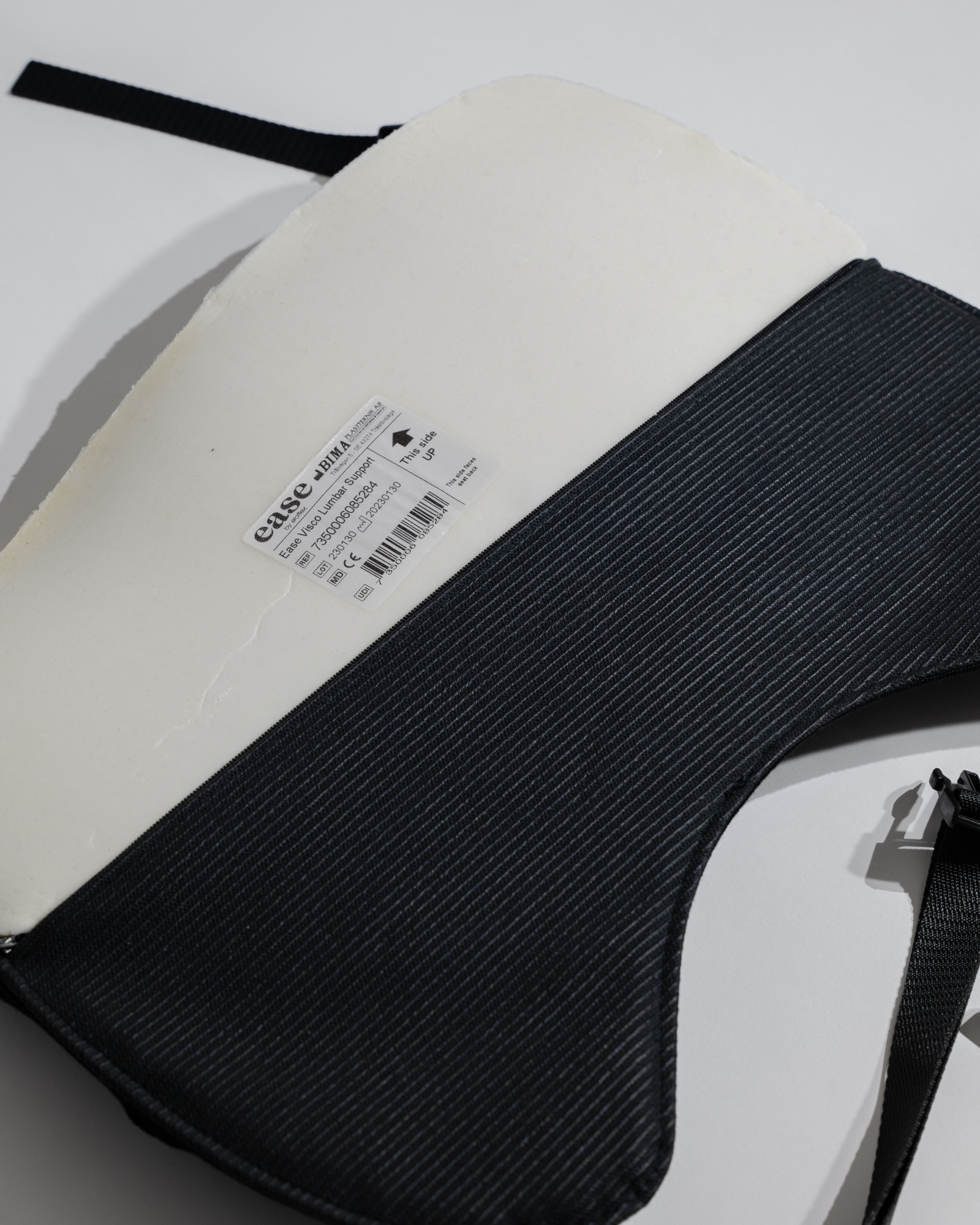 Lumbalna podrška Ease dizajnirana je od čvrste i izdržljive visokoelastične „memorijske” pjene. Za razliku od obične pjene, memorijska pjena reagira na tjelesnu toplinu i pritisak, postajući mekša i konturirajući na lumbalnu „donju” kralježnicu kako bi smanjila umor leđa.