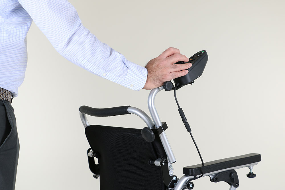 Zahvaljujući našem sustavu upravljanja putem pratitelja, osobe koji hodaju iza ili pokraj invalidskih kolica mogu pokretati električna invalidska kolica s pomoću upravljačke ručice, omogućavajući osobi koja sjedi da se vozi bez napora. Ovo je rješenje korisno za starije korisnike i osobe sa specifičnim medicinskim stanjima. Upravljanje putem pratitelja popularan je dodatak u staračkim domovima i ustanovama za skrb.